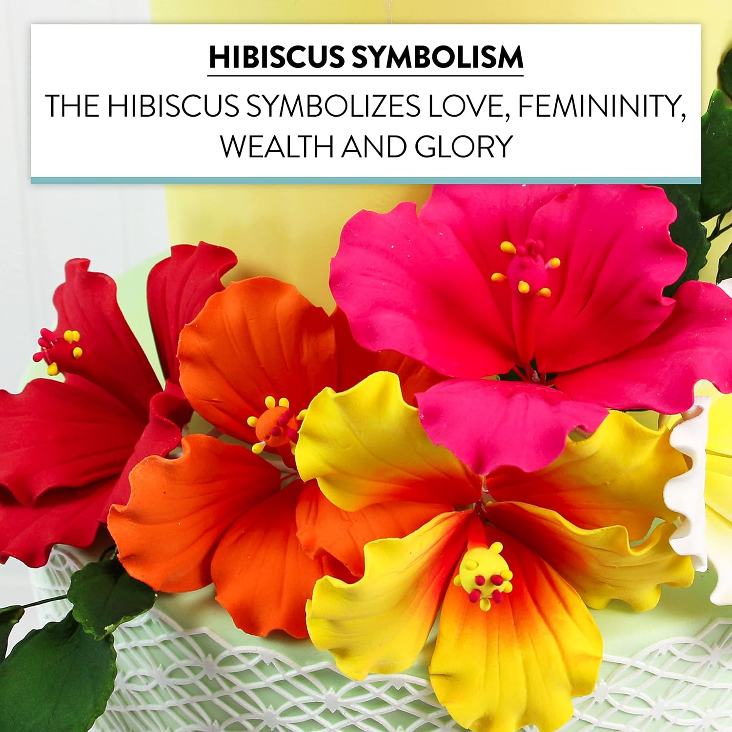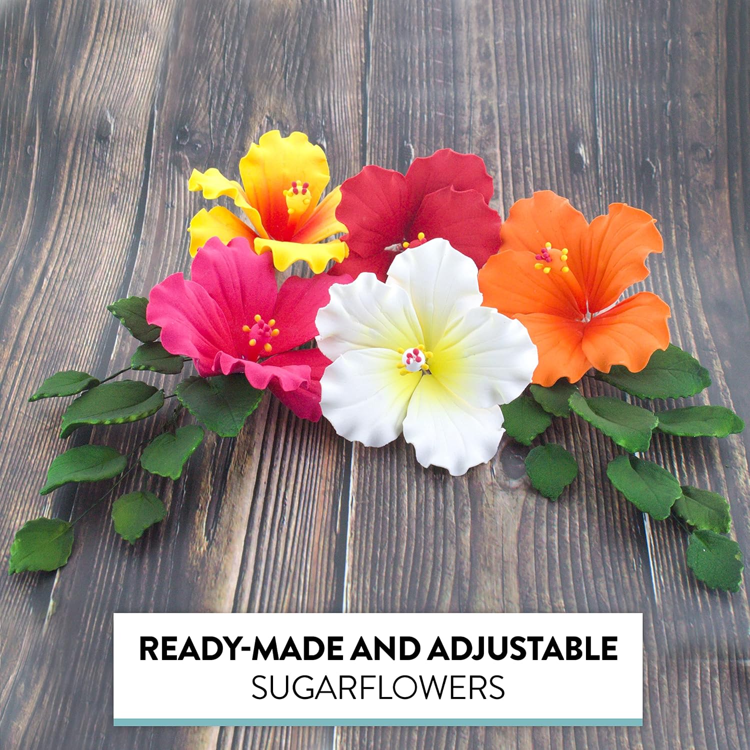 - Kit includes 5 hibiscus flowers and 2 leaf sprays in assorted colors – everything needed for a complete tropical cake topper or tier accent.