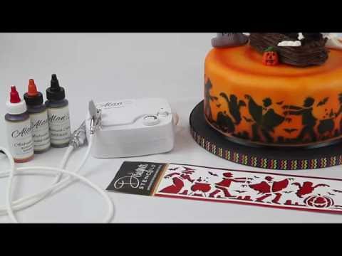 In this Fast & Fabulous learn how to layer airbrush color and airbrush on a stencil design to make this spooky Halloween Cake!
